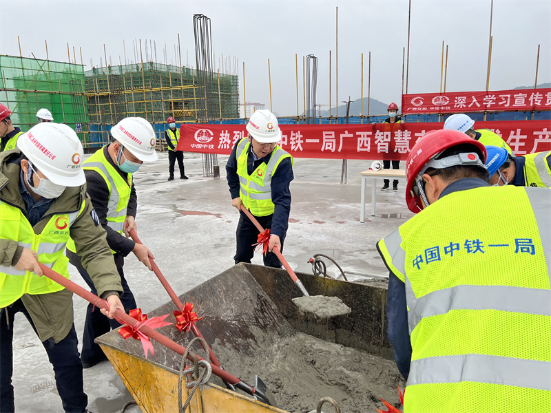12月12日上午10時,伴隨著最后一方混凝土澆筑到位,在業(yè)主單位、建設(shè)單位、監(jiān)理單位及項目相關(guān)人員的共同見證下,廣西智慧交通研發(fā)生產(chǎn)基地項目(一期)順利封頂!