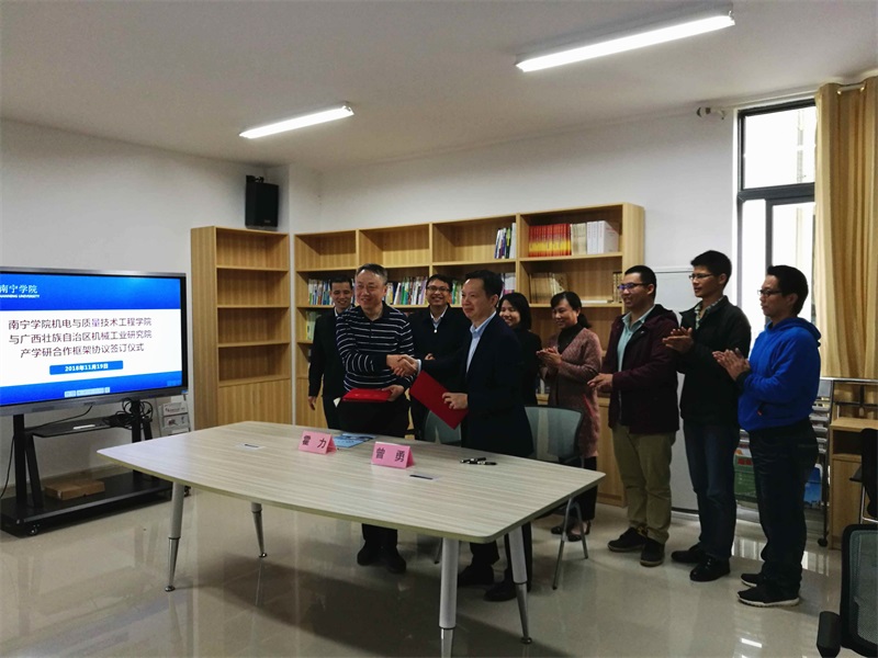 深入落實校企合作,致力實現(xiàn)產(chǎn)學(xué)研雙贏----我院與南寧學(xué)院機電與質(zhì)量技術(shù)工程學(xué)院簽訂《產(chǎn)學(xué)研合作框架協(xié)議》