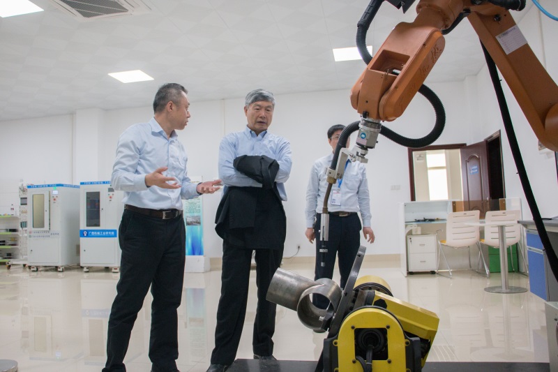 王吉才院長向李培根院士詳細介紹了我院的情況,重點介紹了近年來我院轉(zhuǎn)型升級后在智能制造方面的技術(shù)應(yīng)用。李院士在細心傾聽我院領(lǐng)導(dǎo)的介紹后,對我院在促進廣西智能制造創(chuàng)新發(fā)展中的作用表示充分肯定,并針對我院的科研、生產(chǎn)等工作高屋建瓴地給出了許多建設(shè)性的意見。
