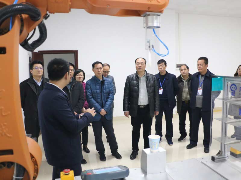 會(huì)議開始前,在院領(lǐng)導(dǎo)的陪同下,徐晶董事長一行參觀了我院智能制造實(shí)驗(yàn)室、工業(yè)機(jī)器人實(shí)驗(yàn)室、3D打印體驗(yàn)室,王吉才院長詳細(xì)介紹了我院發(fā)展歷程、科研成果等情況,特別對(duì)具有創(chuàng)新思維的激光內(nèi)雕數(shù)字化三維成型、數(shù)字化雙胞胎機(jī)器人咖啡吧、高壓清洗機(jī)器人、全自動(dòng)包裝碼垛機(jī)器人生產(chǎn)線等產(chǎn)品進(jìn)行了詳細(xì)講解。