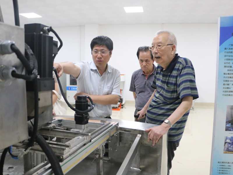 在公司王吉才董事長(zhǎng)、吳湘檸副總經(jīng)理的陪同下,沈老一行先后參觀了工業(yè)機(jī)器人實(shí)驗(yàn)室、智能制造實(shí)驗(yàn)室、車(chē)間、3D打印實(shí)驗(yàn)室,對(duì)公司智能裝備研發(fā)和產(chǎn)業(yè)化成果表示高度贊賞。沈老是機(jī)械工業(yè)技術(shù)領(lǐng)域資深前輩,幾乎每走一個(gè)實(shí)驗(yàn)室、每看一件產(chǎn)品,都能提出十分專(zhuān)業(yè)的問(wèn)題,字里行間透著對(duì)機(jī)械行業(yè)的熱愛(ài)和執(zhí)著,他親切地與公司技術(shù)人員深入探討,對(duì)產(chǎn)品不足之處加以點(diǎn)撥,提出指導(dǎo)性意見(jiàn)和建議。