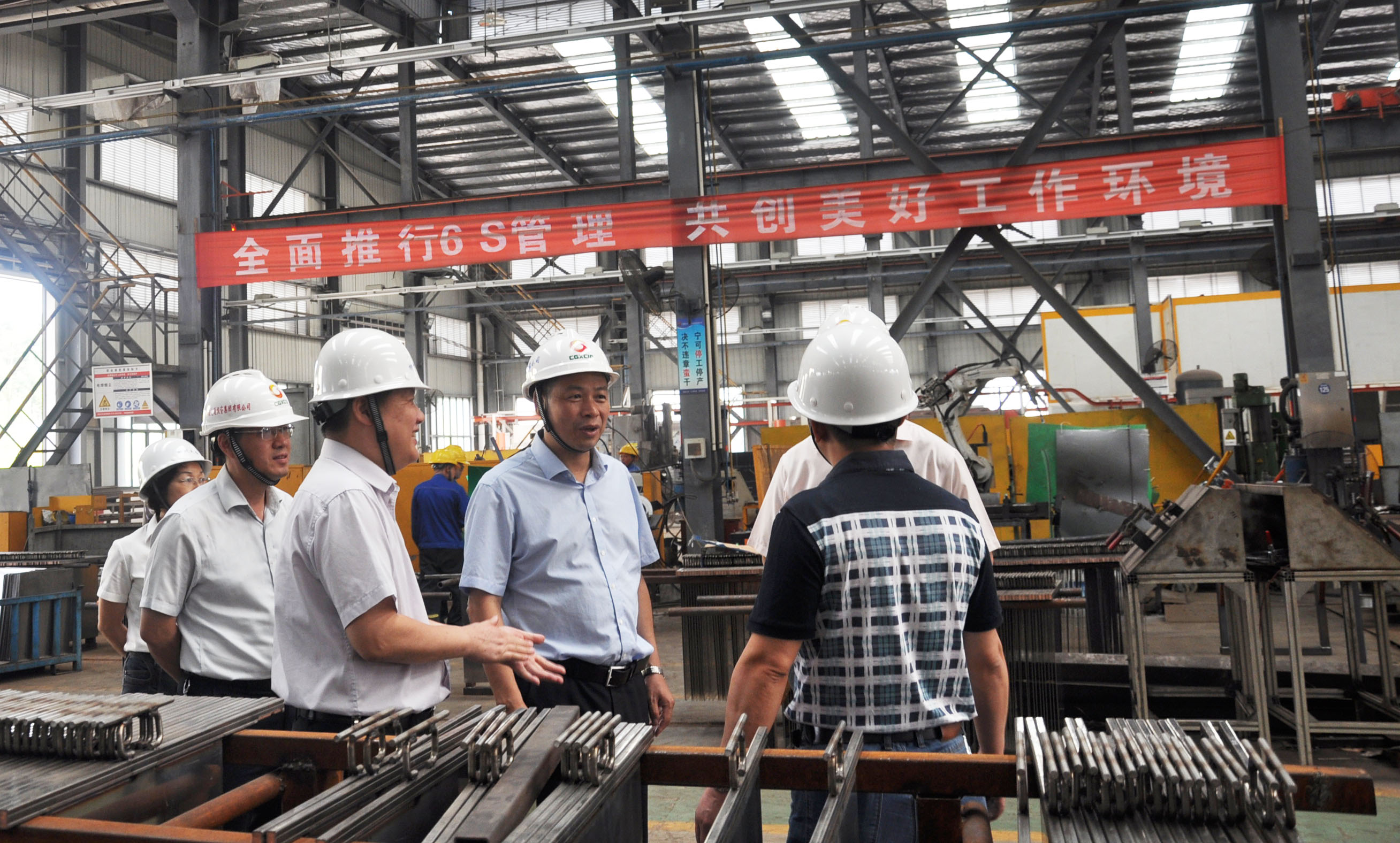 覃衛(wèi)國(guó)總經(jīng)理先是深入生產(chǎn)一線詳細(xì)了解車(chē)間現(xiàn)場(chǎng)龍門(mén)架、立磨、陰極板、入口治超標(biāo)志牌等產(chǎn)品的生產(chǎn)情況、產(chǎn)品工藝、質(zhì)量情況、現(xiàn)場(chǎng)安全管理情況等,之后到會(huì)議室進(jìn)行調(diào)研座談。