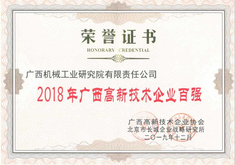 機(jī)械院公司榮登2019年廣西高新技術(shù)企業(yè)百?gòu)?qiáng)TOP29