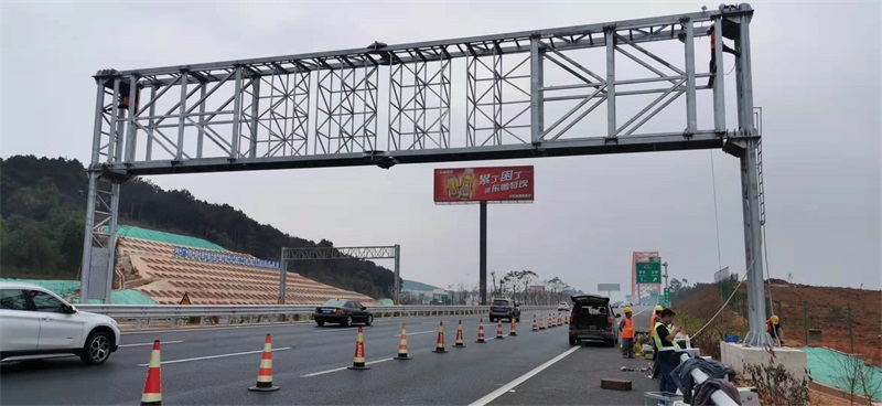 1月8日下午2點,由柳州格瑞米公司生產(chǎn)的廣西第一個情報板門架在南寧東收費站成功吊裝