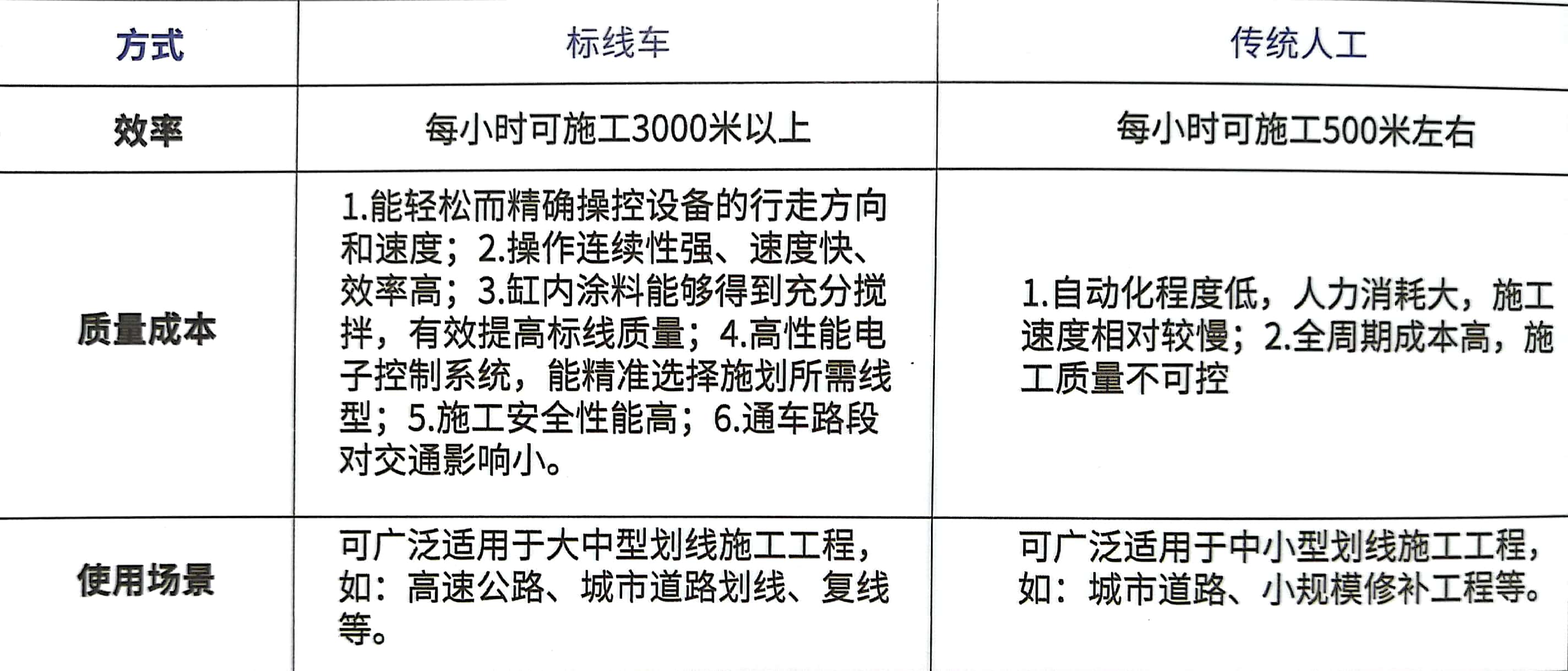 全自動熱熔標線機廣泛適用于大中型劃線施工工程,如高速公路、城市道路劃線等,智能化、自動化程度高,每小時可施工3000米以上,極大程度提升了標線施工的規(guī)范性、安全性和高效性。設(shè)備可以使用各種標線系統(tǒng)的涂料,可噴涂、可刮涂雙組份膠體涂料和可刮涂熱塑性材料。每日產(chǎn)出量高達6000平方米,智能化控制可一鍵切換:結(jié)構(gòu)標線、普通標線、雙線及虛線施劃,內(nèi)置的電控系統(tǒng)保證項目段作業(yè)標線品質(zhì)穩(wěn)定一致,熱油導(dǎo)熱料倉出料恒溫,保證熱熔涂料溫度均勻合理,全自動化操作只需一人即可輕松操作設(shè)備,施工效率為人工繪制的6倍,大大降低施工成本。