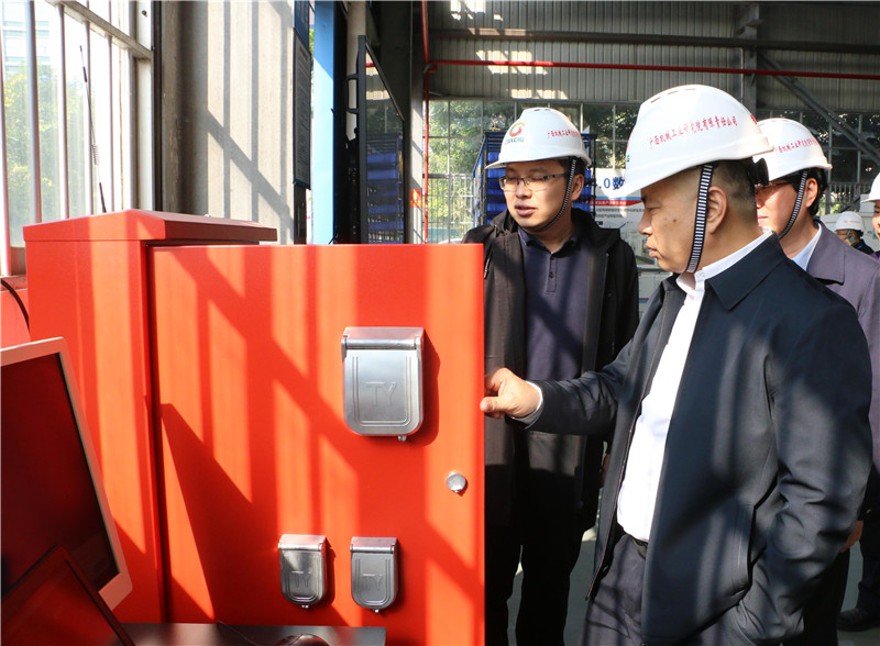 白雷部長參觀公司展廳,到智能制造車間檢查指導安全生產(chǎn)工作,了解機械院自主研發(fā)的智慧電箱、綠籬修剪機器人、全自動錐桶擺放機器人等產(chǎn)品