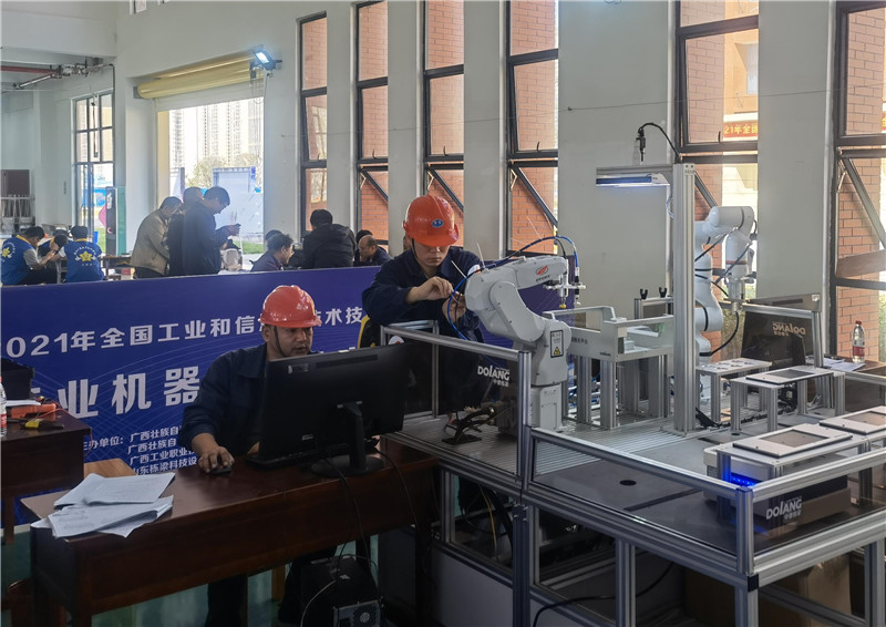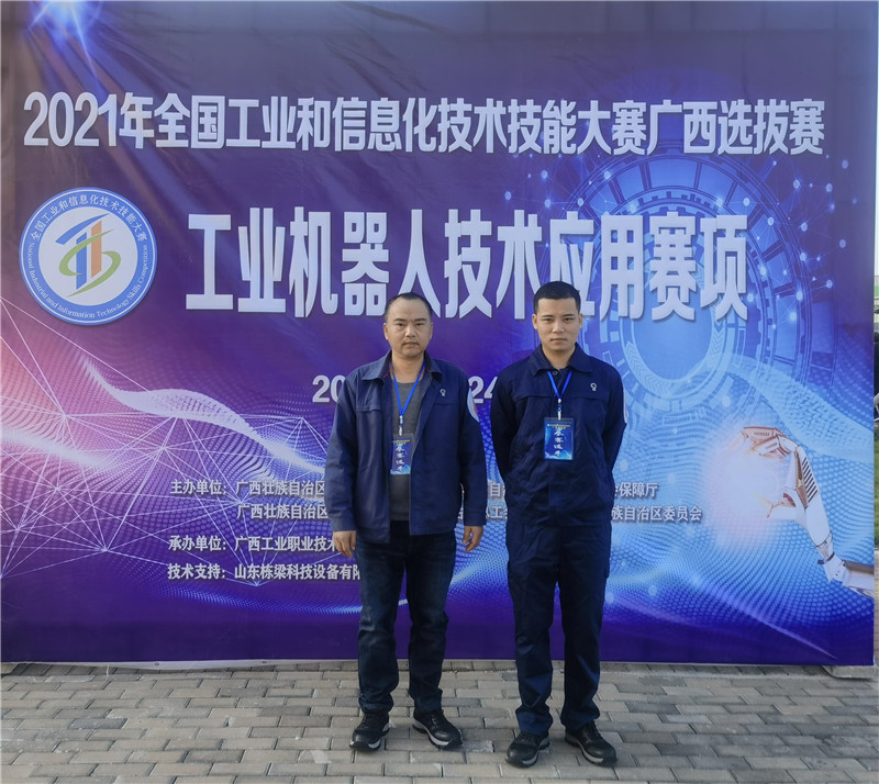 機械院李永成、李修明組成的競賽隊伍,參加了由自治區(qū)工業(yè)和信息化廳等5部門聯(lián)合舉辦的2021年全國工業(yè)和信息化技術(shù)技能大賽廣西選拔賽。本次為兩人首次搭檔參加該類型比賽,經(jīng)過激烈角逐,從工業(yè)機器人系統(tǒng)維護員(工業(yè)機器人技術(shù)應(yīng)用)賽項職工組8個參賽隊伍中脫穎而出,獲得了總分第一的好成績。
