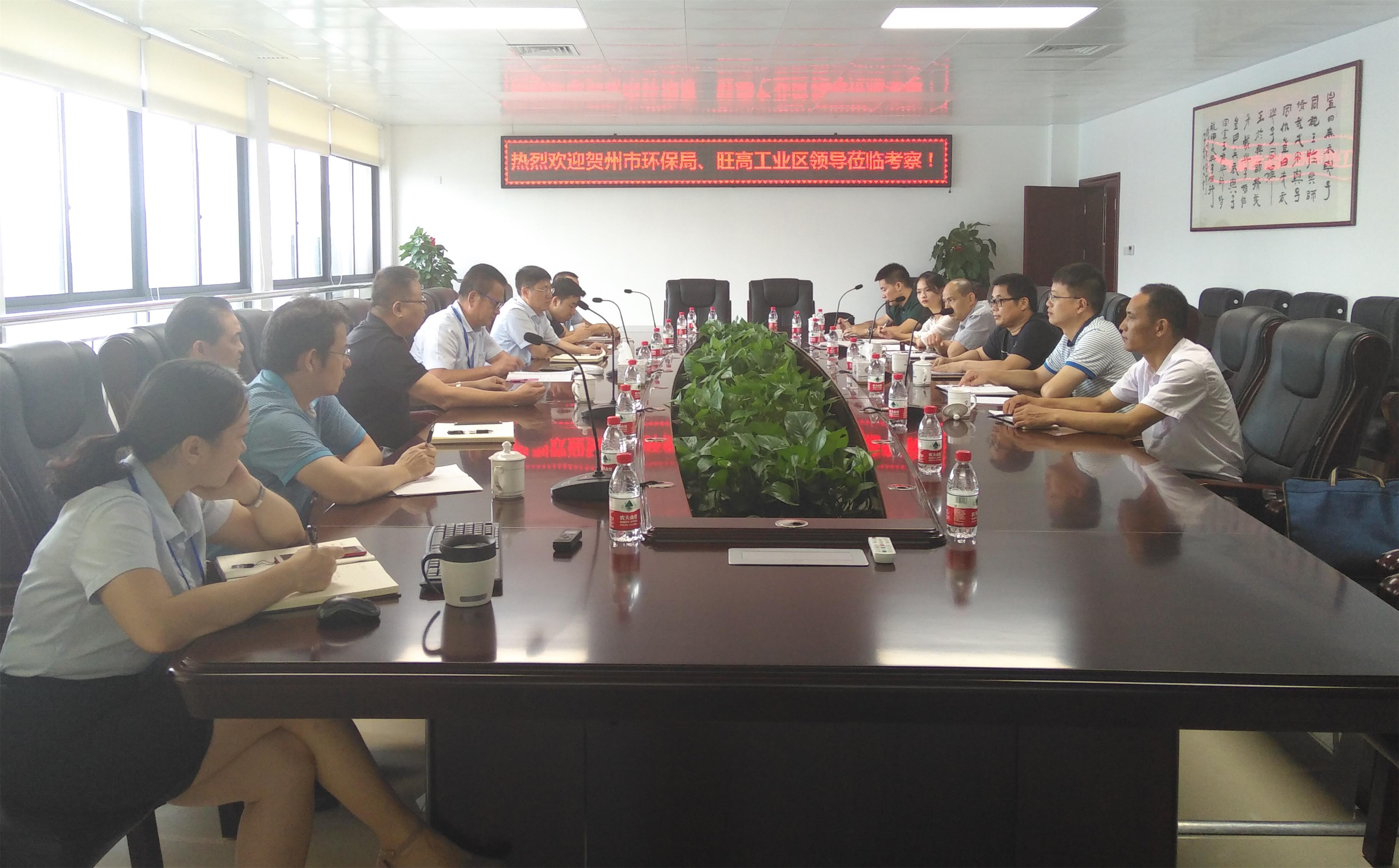 2018年8月6日,賀州市環(huán)保局黃堅局長帶領(lǐng)旺高工業(yè)區(qū)一行6人到我院參觀考察,并召開碳酸鈣產(chǎn)業(yè)污染源調(diào)研及治理工作座談會。