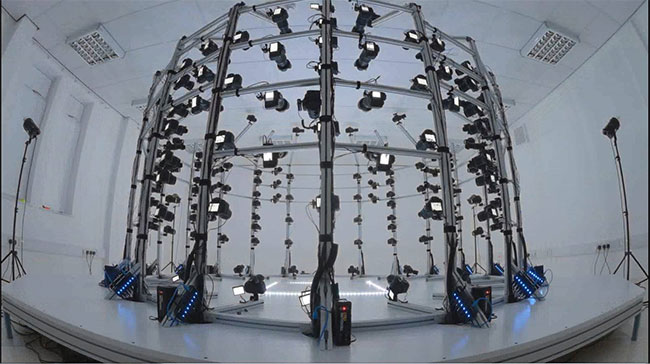 該系統(tǒng)通過軟件控制128個高精度CCD攝像頭進行陣列式多角度同時拍照,形成0.1秒內(nèi)拍攝物體個角度的照片組,將照片組導(dǎo)入專業(yè)數(shù)據(jù)處理軟件,轉(zhuǎn)換成高質(zhì)量帶貼圖的色彩三維人像,并能實現(xiàn)對動態(tài)物體的瞬時捕捉。