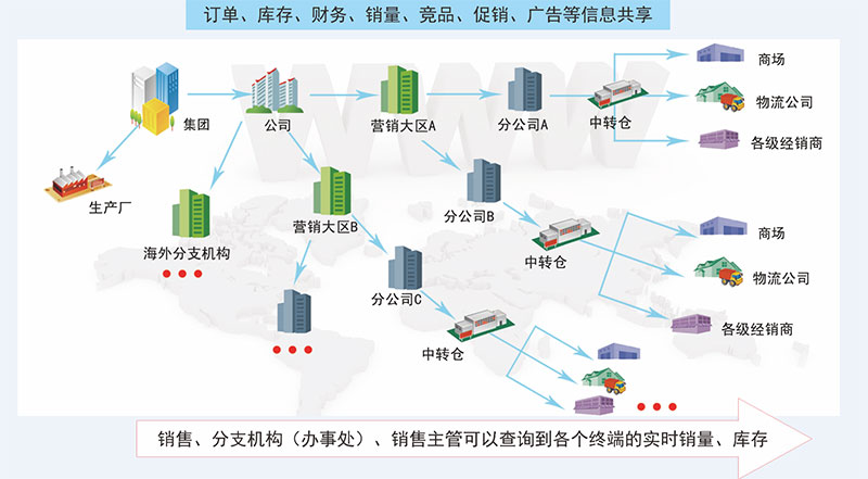 分銷管理信息系統(tǒng)針對大中型企業(yè)分銷業(yè)務管理特點,全面支持訂單、庫存、配送、財務、營銷活動、市場活動、價格管理等企業(yè)分銷業(yè)務職能,實現包含總公司、營銷大區(qū)、分公司、辦事處、供應商、經銷商、分銷商、連鎖店/專賣店/專柜等企業(yè)多個經濟單元組織的多層次分級集中管理。具備電子商務功能,支持網上訂單處理,彈性的行業(yè)自定義功能,具有良好的可擴展能力。