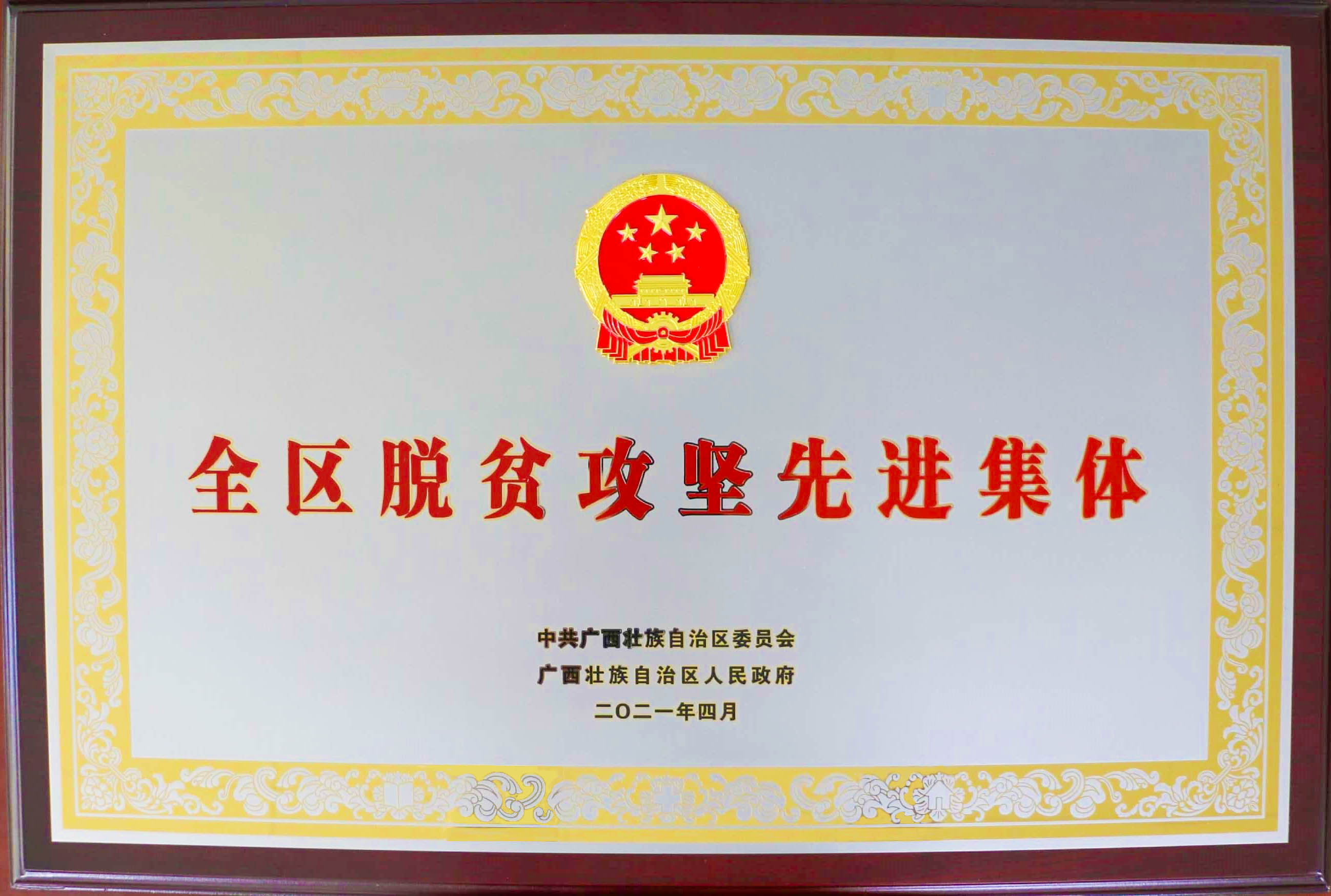 2021年5月7日,全區(qū)脫貧攻堅總結(jié)表彰大會召開,會議表彰了一批脫貧攻堅先進集體、先進個人,廣西機械工業(yè)研究院有限責(zé)任公司榮獲自治區(qū)黨委、自治區(qū)政府授予的“全區(qū)脫貧攻堅先進集體”榮譽稱號。